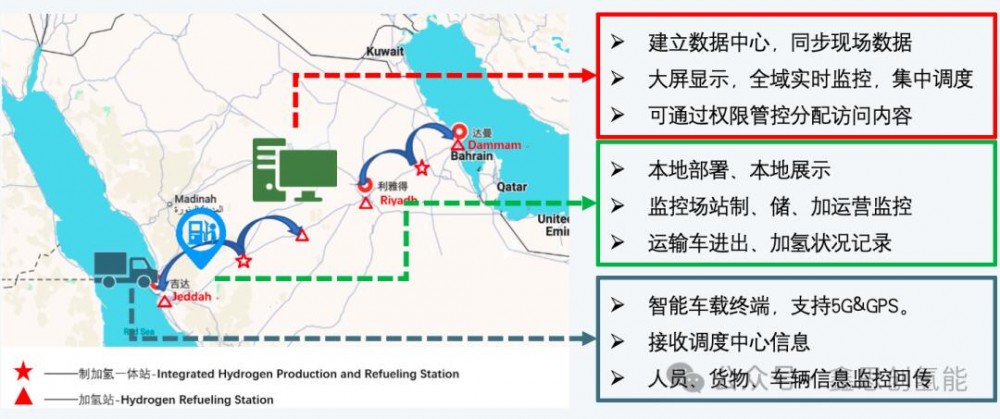 根據雙方簽署的合作計劃,一期項目將于2025年第三至第四季度啟動實施,覆蓋沙特境內由西至東、貫穿吉達、利雅得至達曼的交通干線,全長約1600公里,橫跨沙特核心經濟帶,規劃建設6座加氫站,全面開展站點的工程設計與建設工作。