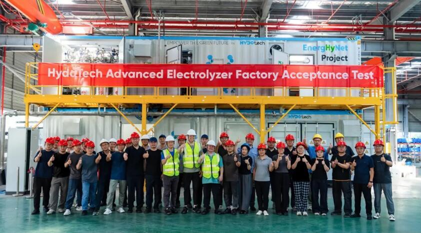 近日,海德氫能(HydoTech)為殼牌EnergHyNet項目定制開發(fā)的先進電解槽解決方案,成功通過工廠驗收測試(FAT)。8月18日,在象征安全啟航與合作圓滿的過水門儀式中,項目設(shè)備正式啟運,標志著這一國際合作項目邁入新階段。這一日期更具特殊意義——2022年8月18日,海德氫能新一代電解水制氫系統(tǒng)氫舟?首次發(fā)布。如今,氫舟?所奠定的核心技術(shù)成果,正持續(xù)在國際合作項目中落地兌現(xiàn),截至目前,該系統(tǒng)已在中國、歐洲、中東等全球多個區(qū)域?qū)崿F(xiàn)規(guī)模化應(yīng)用,其技術(shù)領(lǐng)先性與商業(yè)化成熟度得到充分驗證。