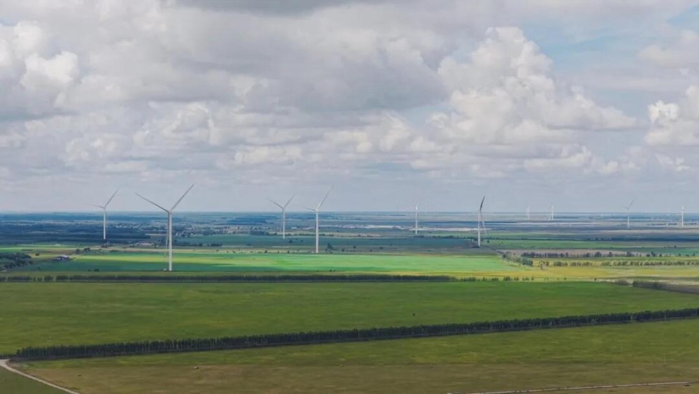中能建松原氫能產業園(綠色氫氨醇一體化)項目采用綠電直供模式,創新應用了源網荷儲精準匹配、新型儲氫、多穩態柔性合成氨等一系列全球領先技術,為我國綠氫大規模商業化應用提供了可復制、可推廣的樣板。項目將分期建設總容量300萬千瓦的新能源配套項目。金風科技為一期項目提供GWH221-7.6MW、GWH221-7.7MW共67臺低溫型陸上風電機組,總裝機容量510MW。