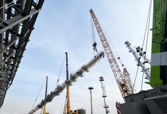 低溫甲醇洗裝置吸收塔吊裝作業現場。蘇晨陽攝