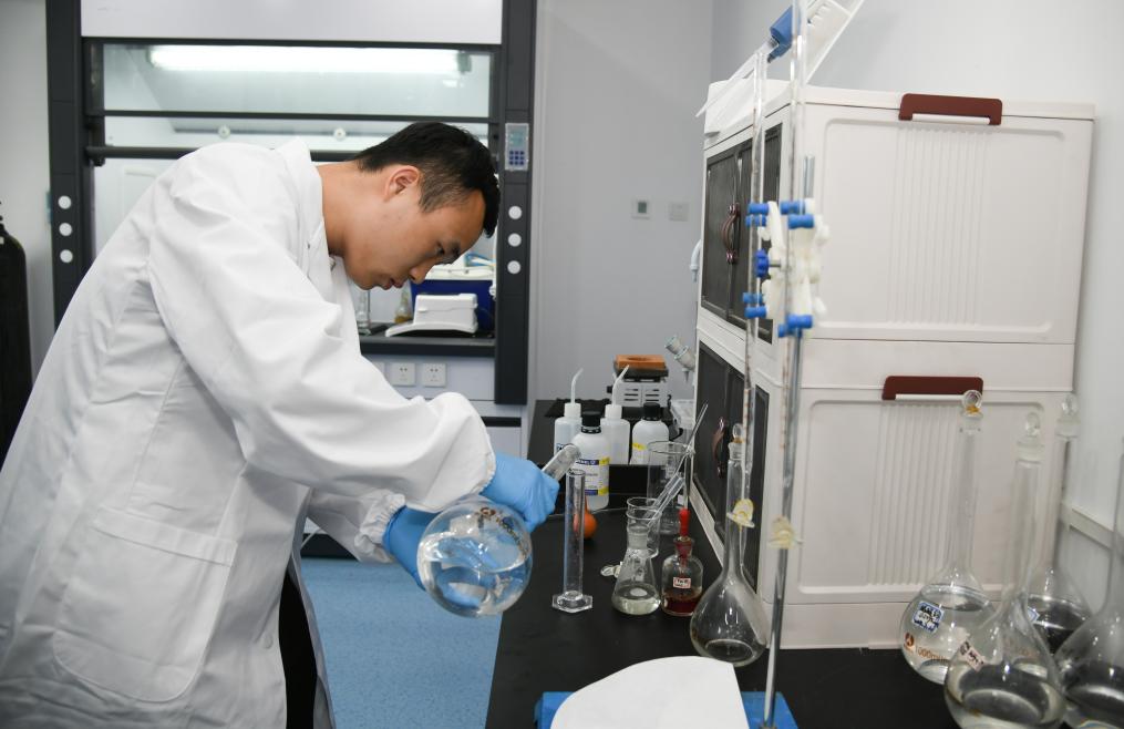 技術(shù)人員在西安一九零八新能源科技有限公司進行實驗。 新華社記者張博文 攝
