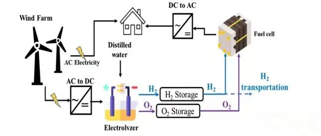 風電解系統主要由風力發電機、變流器(AC/DC)和水電解槽構成。應用配置多樣: