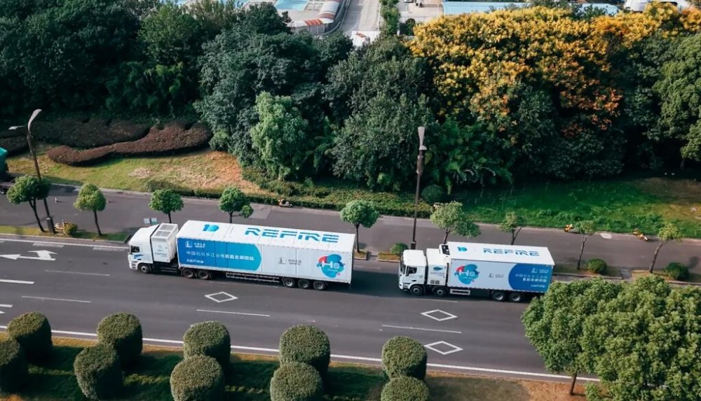 3臺不同型號的氫能物流車從上海出發