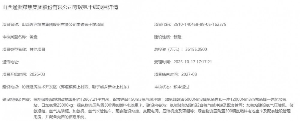 近日,山西通洲煤焦集團(tuán)股份有限公司零碳?xì)涓删€項(xiàng)目備案預(yù)審?fù)ㄟ^。