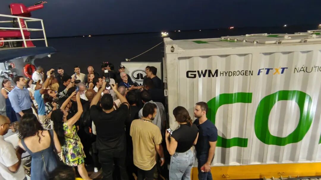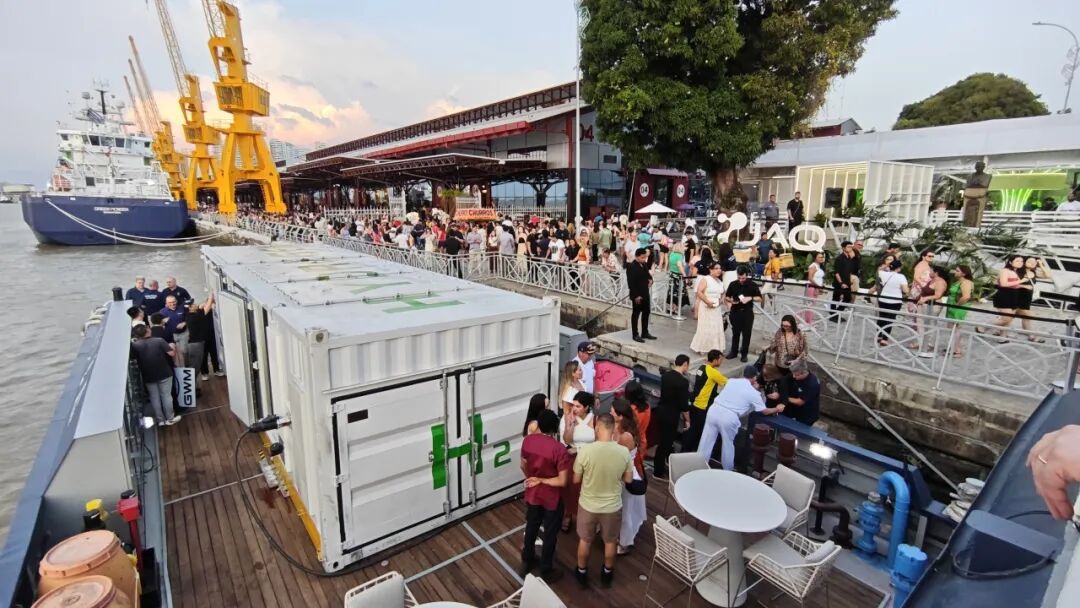 會議期間,由未勢能源聯合海大清能與巴西JAQ、NAUTICA、ITAIPU PARQUETEC 公司共同研發制造的巴西首艘氫能科考船——“探索者 H1(Explorer H1)”首次正式亮相,并停靠在帕拉州貝倫市的港口碼頭旅游區面向公眾開放參觀,旨在為用戶提供沉浸式體驗。