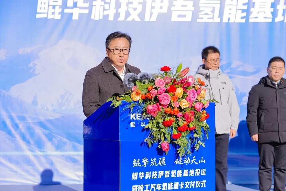 儀式由伊吾縣委副書記、常務(wù)副縣長張克文主持。伊吾縣委書記彭鵬在致辭中表示,近年來伊吾縣依托資源和區(qū)位優(yōu)勢,積極推動氫能產(chǎn)業(yè)發(fā)展,取得了顯著成果——成功建成日產(chǎn)25噸純氫工廠和4座加氫站,吸引了包括鯤華科技、彼歐藍(lán)能等多家龍頭企業(yè)入駐,形成了氫能與燃料電池裝備制造集群,助推哈密市成功入選國家燃料電池汽車示范城市群。鯤華科技?xì)淠芑氐耐哆\(yùn)和徐工氫能重卡的交付,標(biāo)志著伊吾縣“制儲輸用”全產(chǎn)業(yè)鏈邁入實質(zhì)運(yùn)營新階段。
