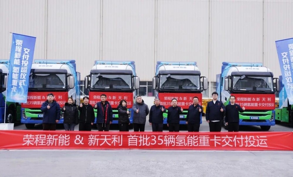 12月22日,榮程新能集團接連舉辦兩場氫能重卡交付儀式,總計65輛氫能重卡正式交付投運。其中,30輛交付天津翰德物流有限公司,專項服務于中海油京津冀魯區(qū)域設備及物資運輸;35輛交付天津開發(fā)區(qū)新天利貿(mào)易有限責任公司,重點投入天津港集裝箱集疏港運輸業(yè)務。
