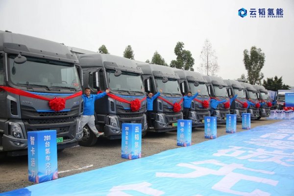 12月26日,云韜氫能向智卡科技、廣環廠等多家企業完成批量交付,共計201臺氫能商用車,涵蓋18噸氫燃料電池飛翼物流車、4.5噸氫燃料電池冷藏車、31噸氫燃料電池混凝土攪拌車、49噸氫燃料電池牽引車等四大核心車型。
