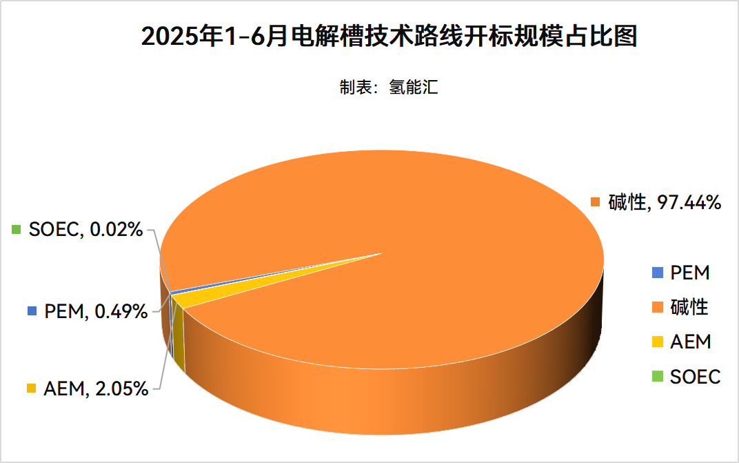 通過梳理2025年1-6月氫能中標(biāo)、簽約項(xiàng)目技術(shù)路線,包括堿性、AEM、PEM、SOEC四種技術(shù)路線。