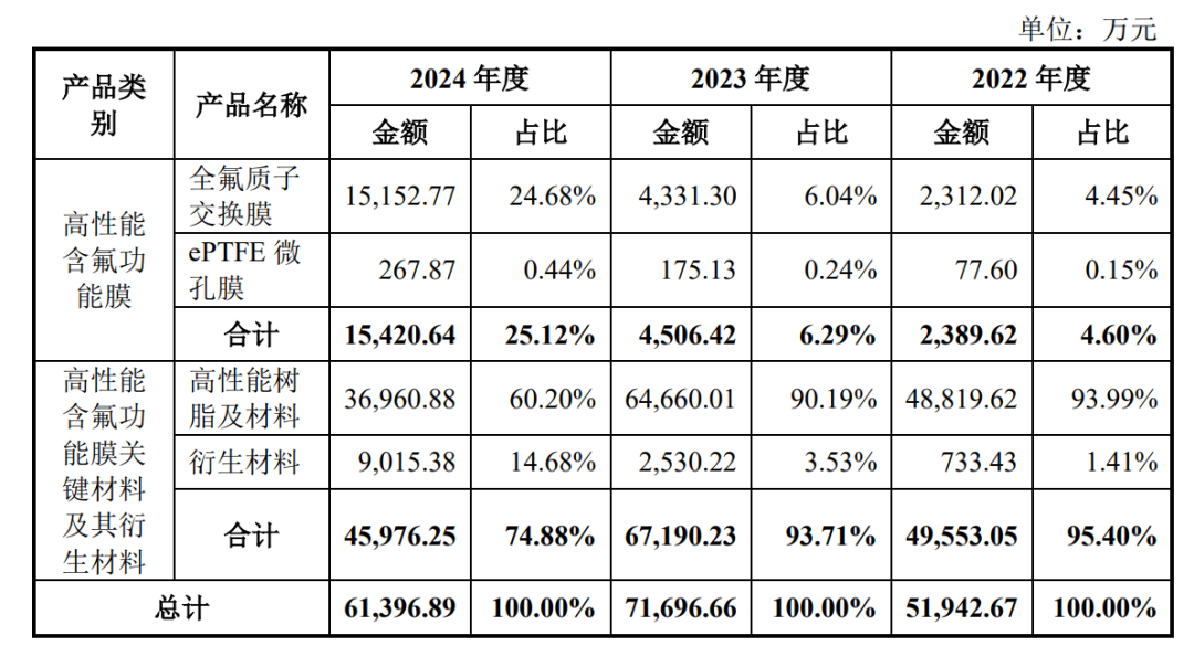 在高性能含氟功能膜方面,公司是國(guó)內(nèi)首家、全球少數(shù)能夠同時(shí)量產(chǎn)全氟質(zhì)子交換膜和其上游原料全氟離子交換樹(shù)脂及關(guān)鍵單體的企業(yè),相關(guān)產(chǎn)品、技術(shù)處于國(guó)際/國(guó)內(nèi)領(lǐng)先地位,具備優(yōu)秀的技術(shù)創(chuàng)新和產(chǎn)業(yè)化應(yīng)用推廣能力,產(chǎn)品廣泛應(yīng)用于液流電池、氫燃料電池和綠氫制備等領(lǐng)域。為國(guó)家新能源關(guān)鍵產(chǎn)業(yè)的核心設(shè)備材料的全鏈條自主可控提供了有力保障。基于在含氟功能膜領(lǐng)域深厚的技術(shù)積累,公司正在積極推進(jìn) ePTFE(膨體聚四氟乙烯)膜及ETFE(乙烯-四氟乙烯共聚物)膜等含氟功能膜新產(chǎn)品的研發(fā)與商業(yè)化進(jìn)程。