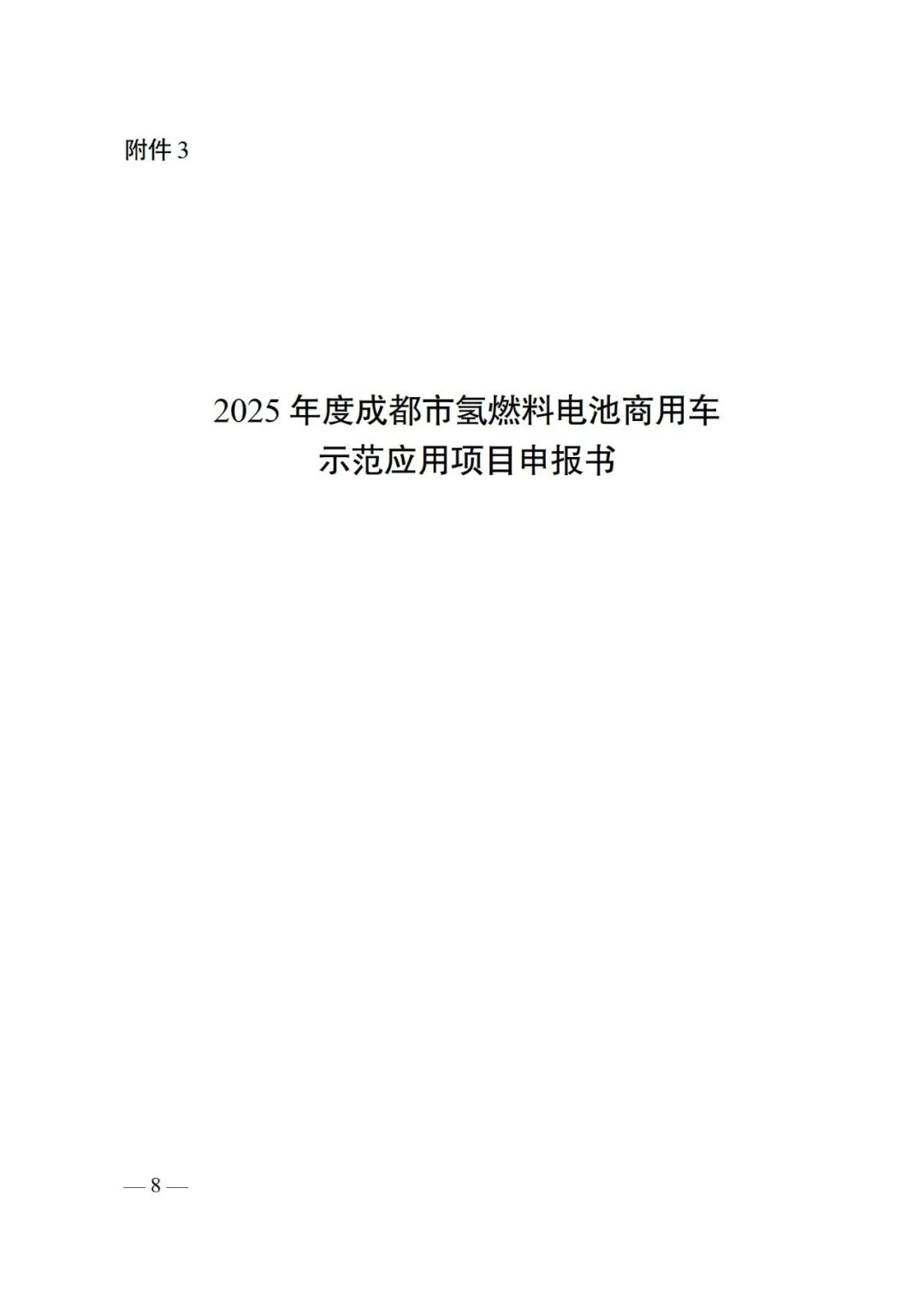 近日,成都市經濟和信息化局 成都市交通運輸局發布《關于開展2025年度成都市氫燃料電池商用車示范應用項目(第一批)申報工作的