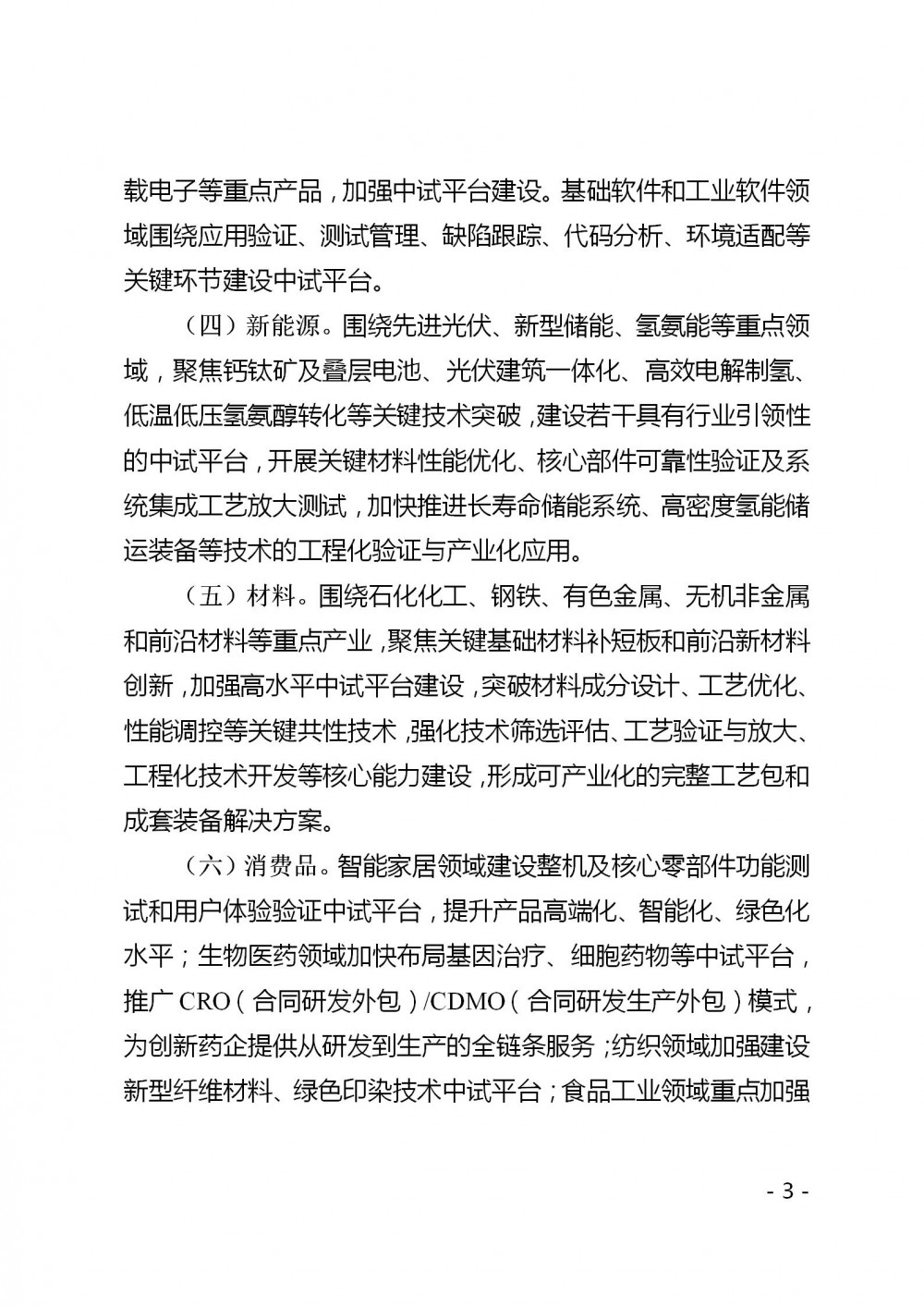 文件指出,新能源。圍繞先進光伏、新型儲能、氫氨能等重點領域,聚焦鈣鈦礦及疊層電池、光伏建筑一體化、高效電解制氫、低溫低壓氫氨醇轉化等關鍵技術突破,建設若干具有行業引領性的中試平臺,開展關鍵材料性能優化、核心部件可靠性驗證及系統集成工藝放大測試,加快推進長壽命儲能系統、高密度氫能儲運裝備等技術的工程化驗證與產業化應用。