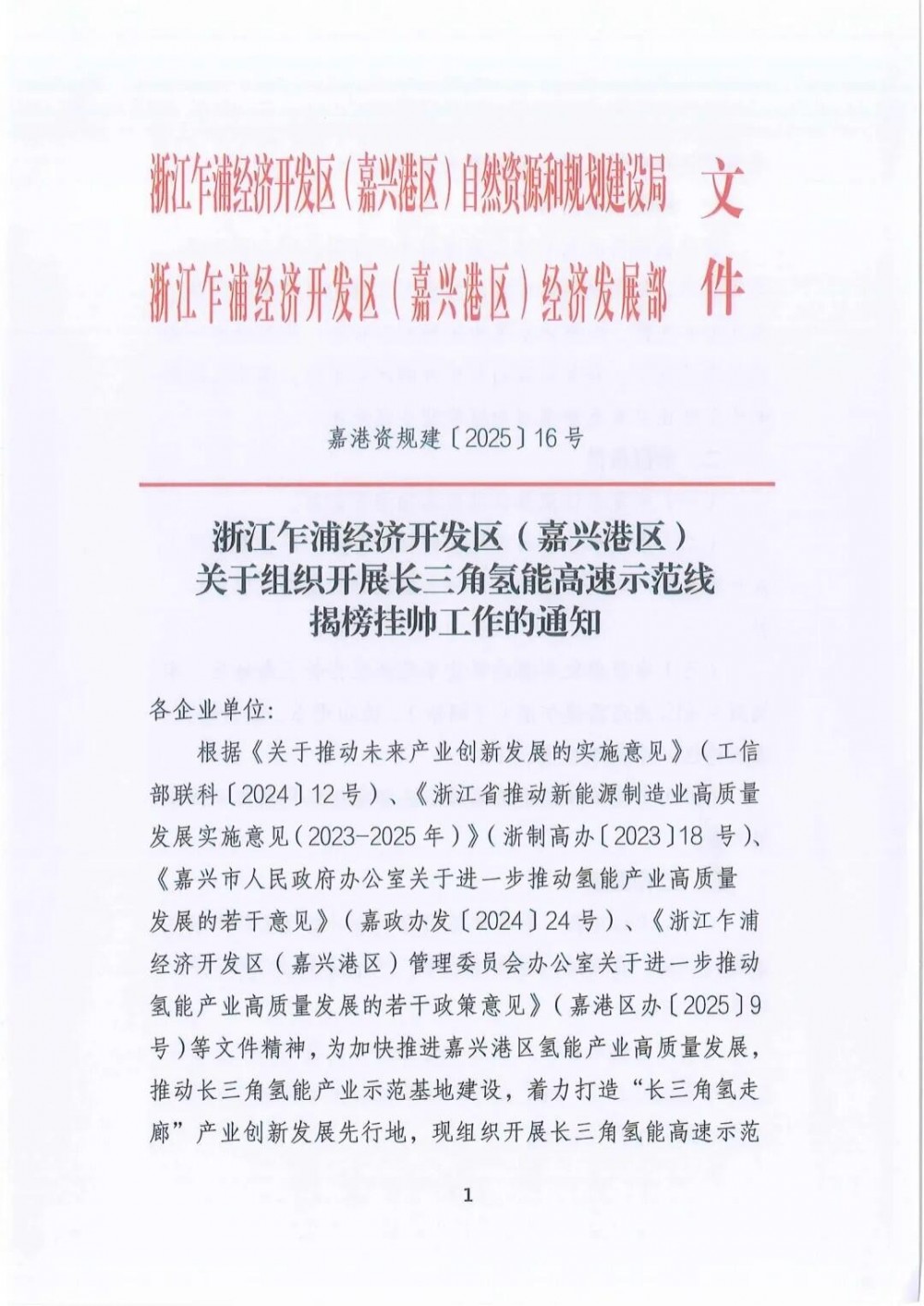 近日,浙江乍浦經(jīng)濟(jì)開發(fā)區(qū)(嘉興港區(qū))關(guān)于組織開展長(zhǎng)三角氫能高速示范線揭榜掛帥工作的通知。