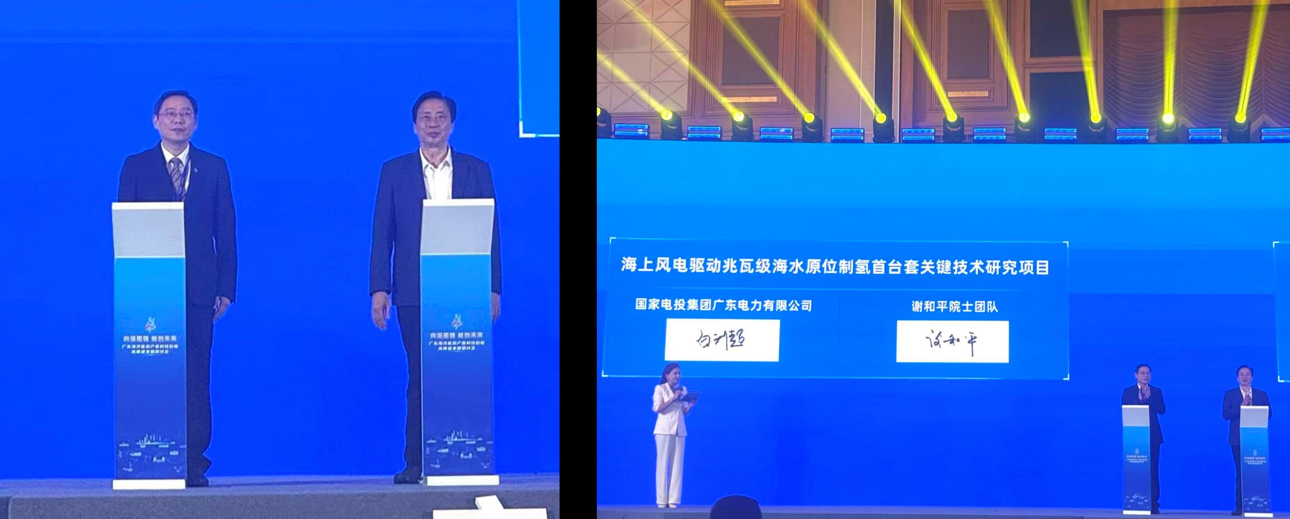 8月31日,國家電投集團廣東電力有限公司與謝和平院士團隊(含深圳大學、四川大學、東方電氣股份有限公司、東方電氣(福建)創新研究院有限公司)在廣東海洋能源產業科技創新高質量發展研討會上,簽署“海上風電驅動兆瓦級海水原位制氫首臺套關鍵技術研究項目”合作協議。謝和平院士與國家電投廣東公司董事長白利超分別代表合作雙方簽約。