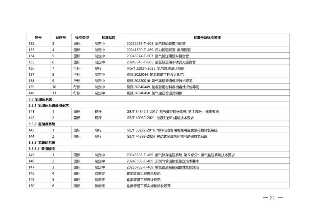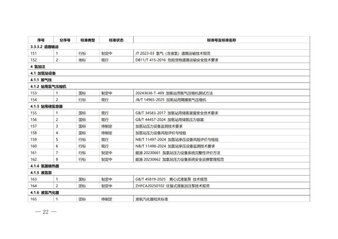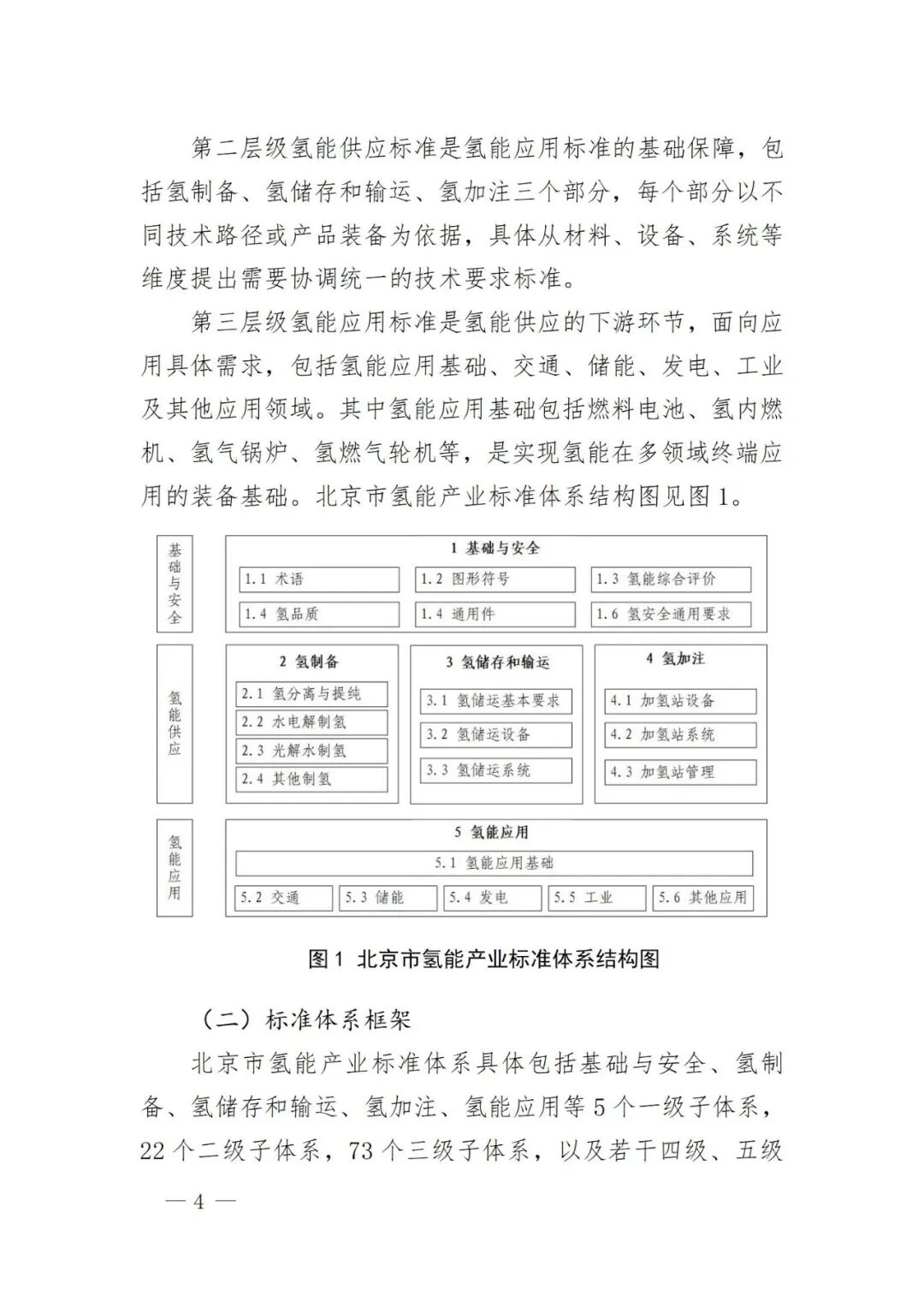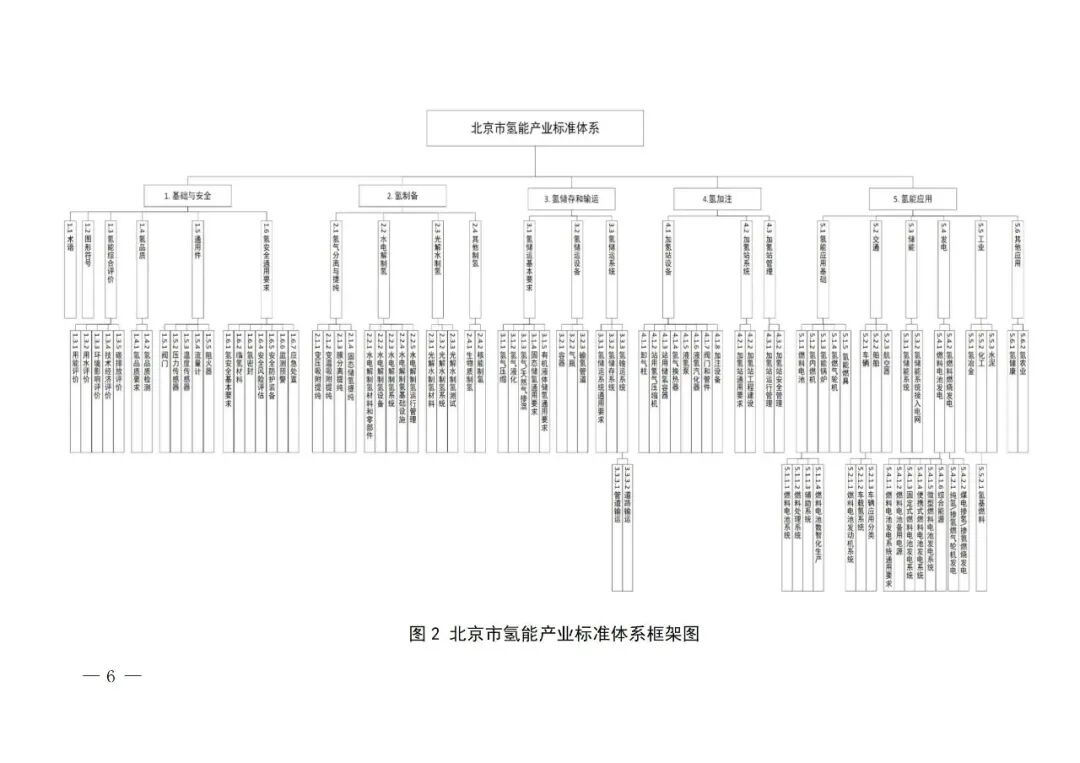 北京市氫能產(chǎn)業(yè)標(biāo)準(zhǔn)體系具體包括基礎(chǔ)與安全、氫制備、氫儲(chǔ)存和輸運(yùn)、氫加注、氫能應(yīng)用等5個(gè)一級(jí)子體系,22個(gè)二級(jí)子體系,73個(gè)三級(jí)子體系,以及若干四級(jí)、五級(jí)子體系。