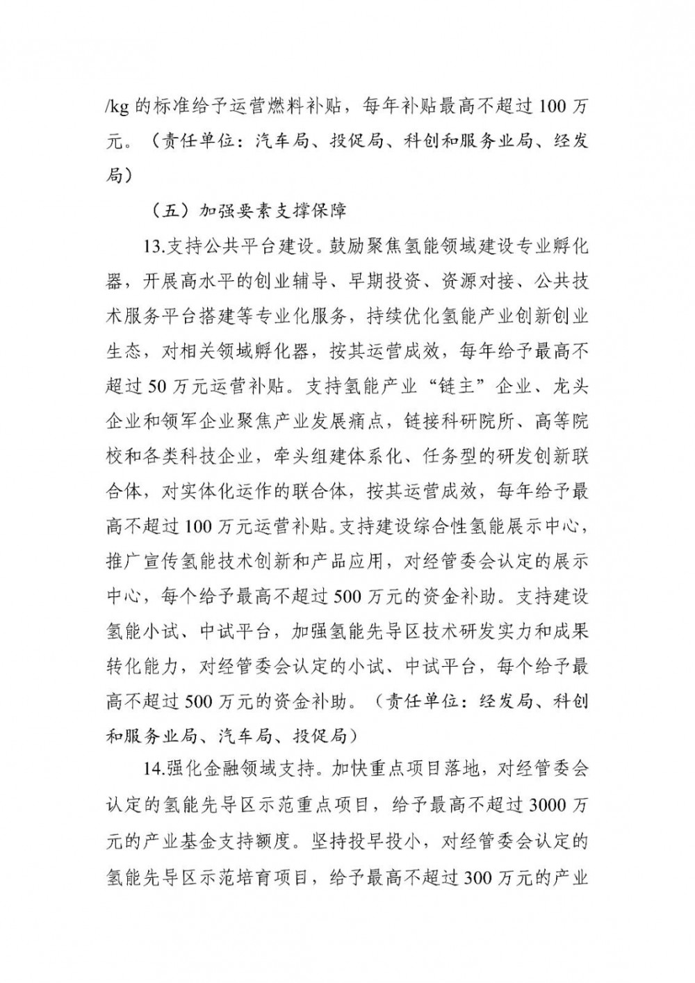 加快重點(diǎn)項(xiàng)目落地,對(duì)經(jīng)管委會(huì)認(rèn)定的氫能先導(dǎo)區(qū)示范重點(diǎn)項(xiàng)目,給予最高不超過3000萬元的產(chǎn)業(yè)基金支持額度。