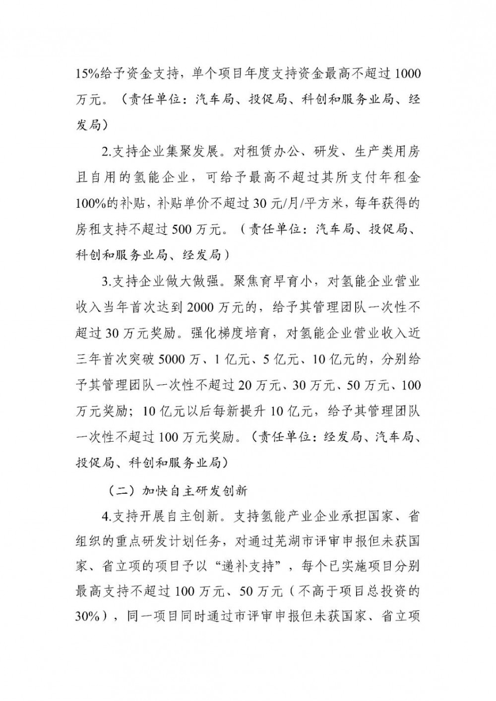 對(duì)租賃辦公、研發(fā)、生產(chǎn)類用房且自用的氫能企業(yè),可給予最高不超過其所支付年租金100%的補(bǔ)貼,補(bǔ)貼單價(jià)不超過30元/月/平方米,每年獲得的房租支持不超過500萬元。