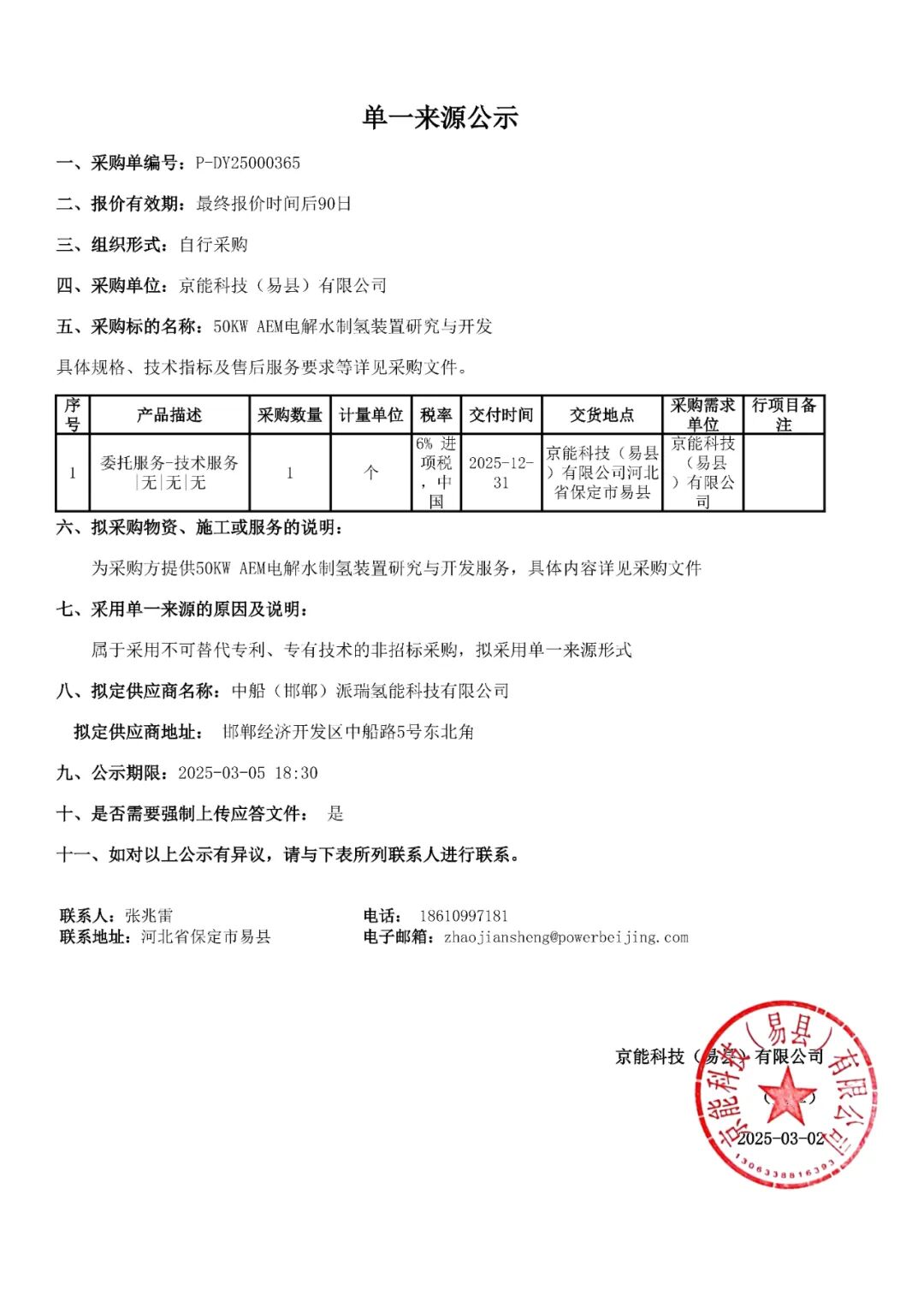 10月9日,京能科技(易縣)有限公司AEM水電解制氫項(xiàng)目工程總承包采購(gòu)公告發(fā)布。據(jù)了解,今年3月份,京能集團(tuán)發(fā)布50KW AEM電解水制