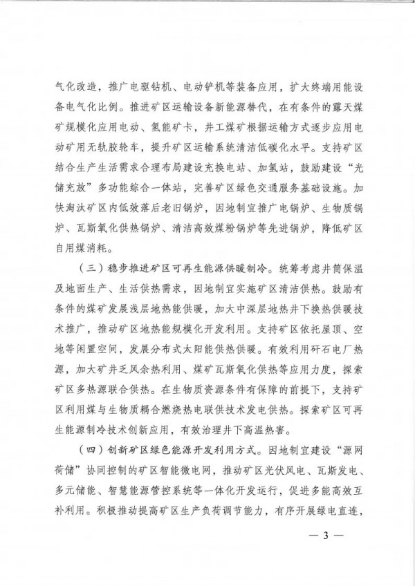 穩(wěn)步推進(jìn)礦區(qū)可再生能源供暖制冷。探索礦區(qū)多熱源聯(lián)合供熱。在生物質(zhì)資源條件有保障的前提下,支持礦區(qū)利用煤與生物質(zhì)耦合燃燒熱電聯(lián)供技術(shù)發(fā)電供熱。探索礦區(qū)可再生能源制冷技術(shù)創(chuàng)新應(yīng)用,有效治理井下高溫?zé)岷Α?/p>