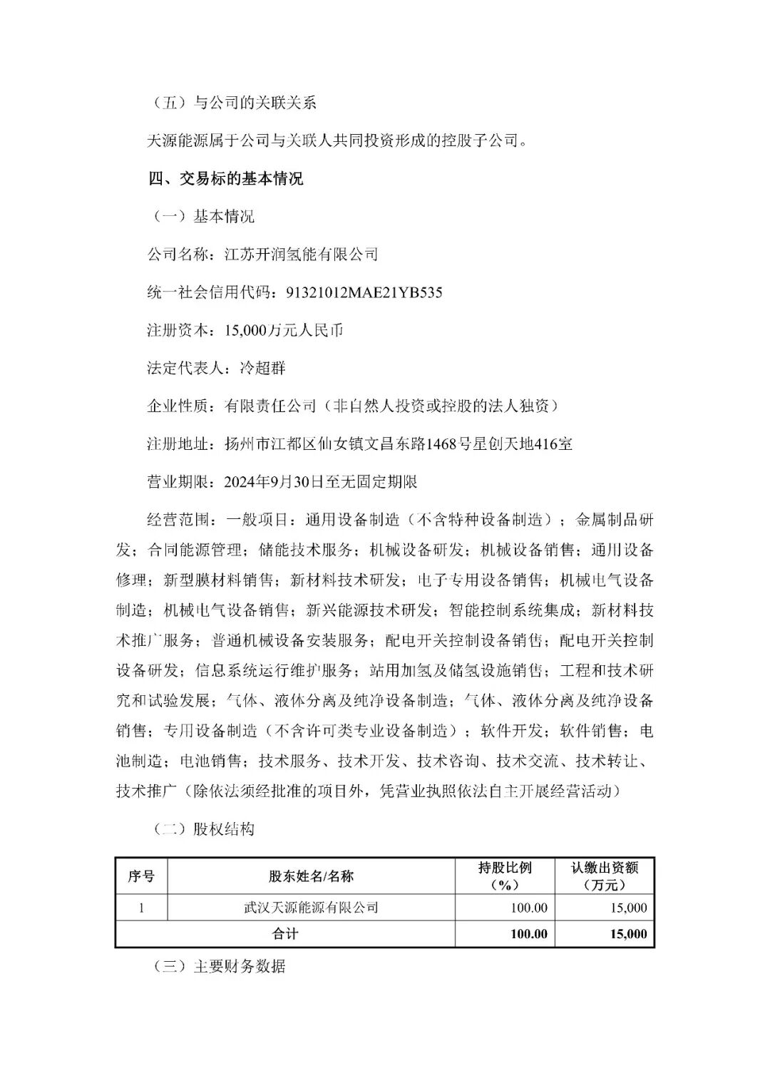 武漢天源表示,為充分滿足公司全資子公司江蘇氫能科技生產經營、產業整合以及長遠發展需求進行本次交易;本次交易有利于實現江蘇氫能科技整體規劃和布局優化,符合其實際生產經營需要和未來發展規劃,具有充分的必要性與合理性,不存在損害公司及全體股東,特別是中小股東利益的情形。
