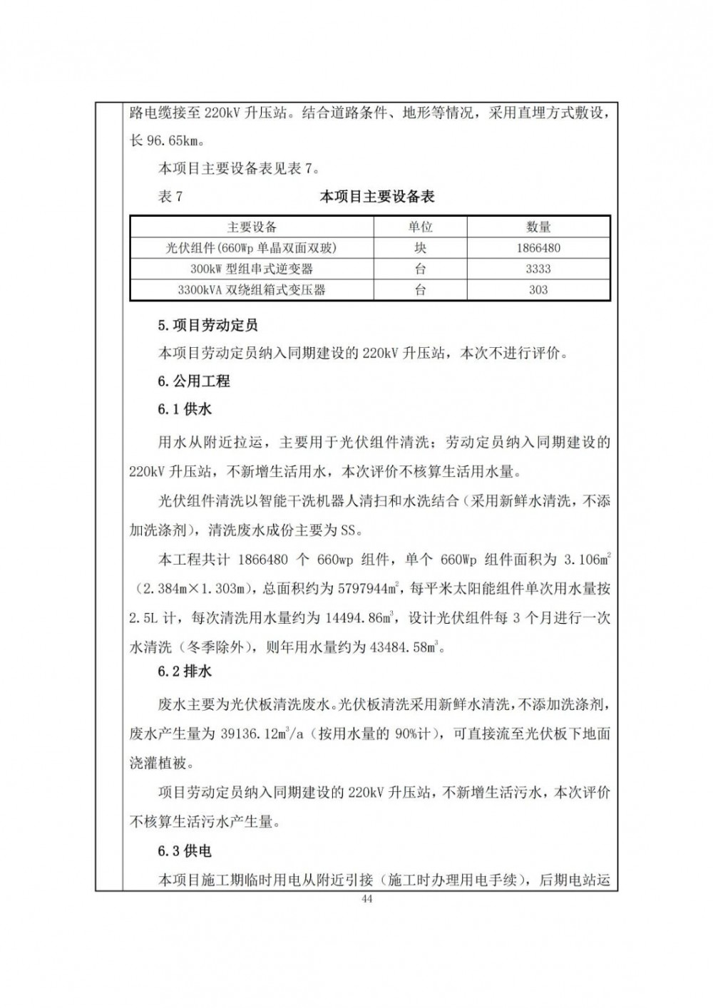 光伏發電項目首年發電量為210121.38萬kWh,首年等效滿負荷利用小時數為 1706h;25年運營期內年均發電量為198543.27萬kWh,等效滿負荷利用小時數為1611h。