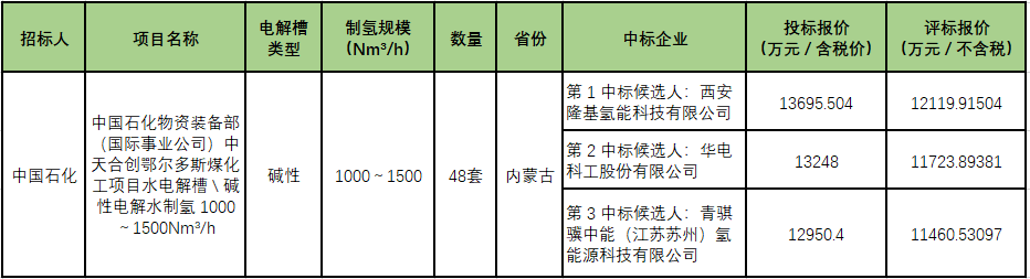 根據公示,隆基氫能、華電科工、青騏驥3家企業預中標。